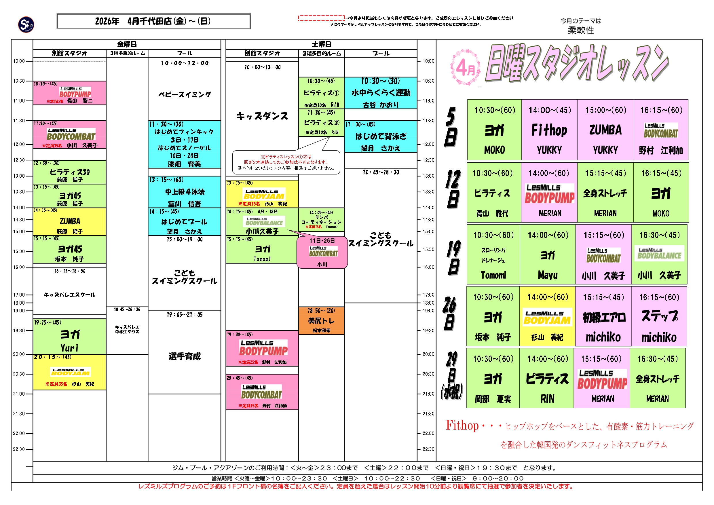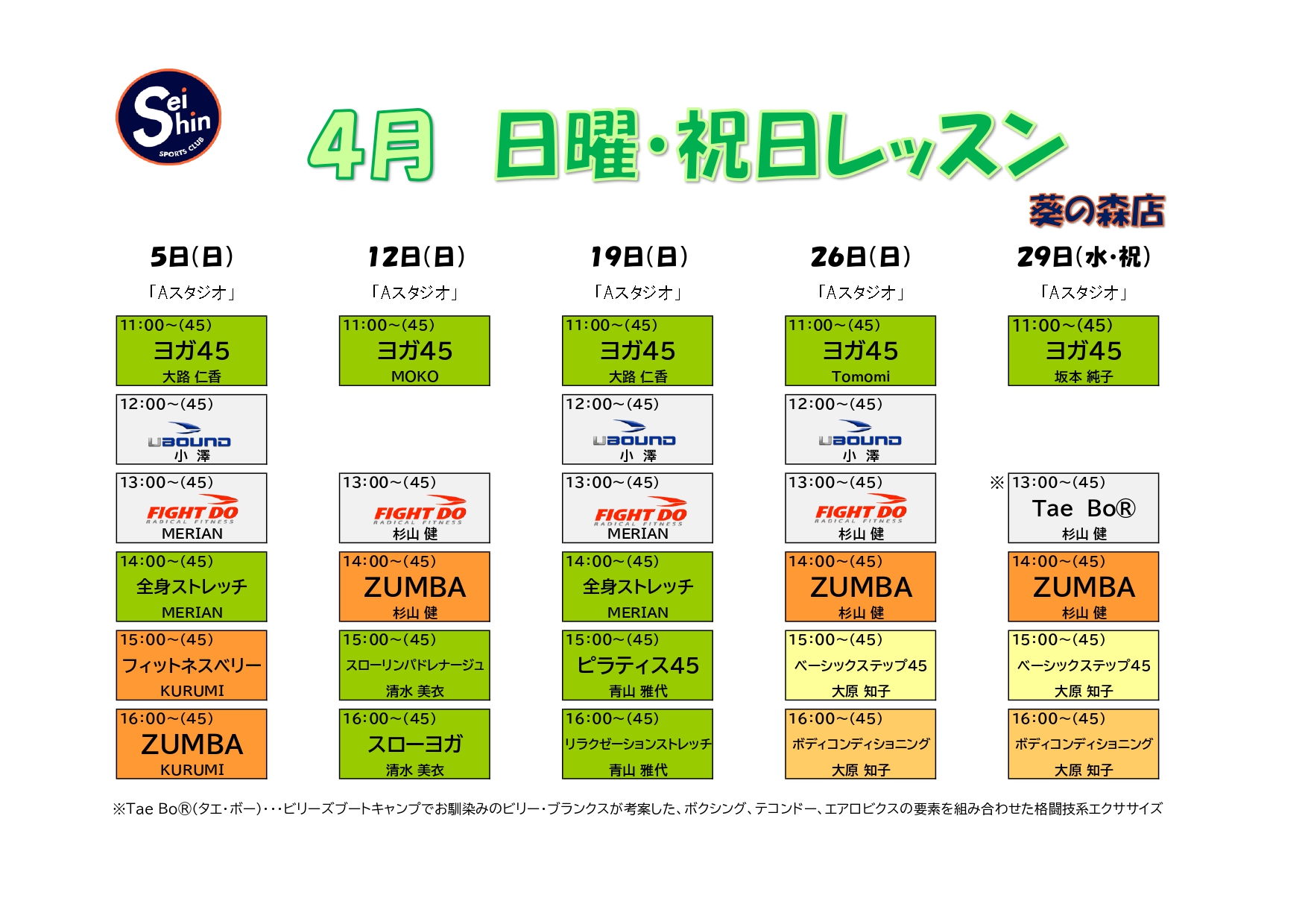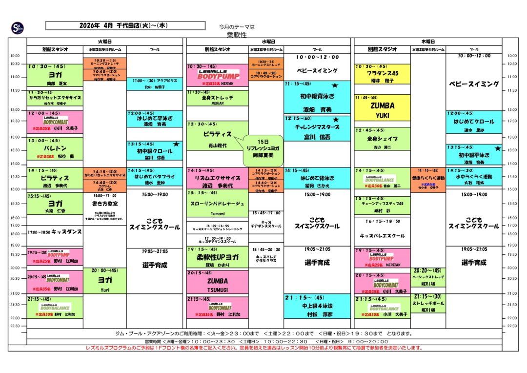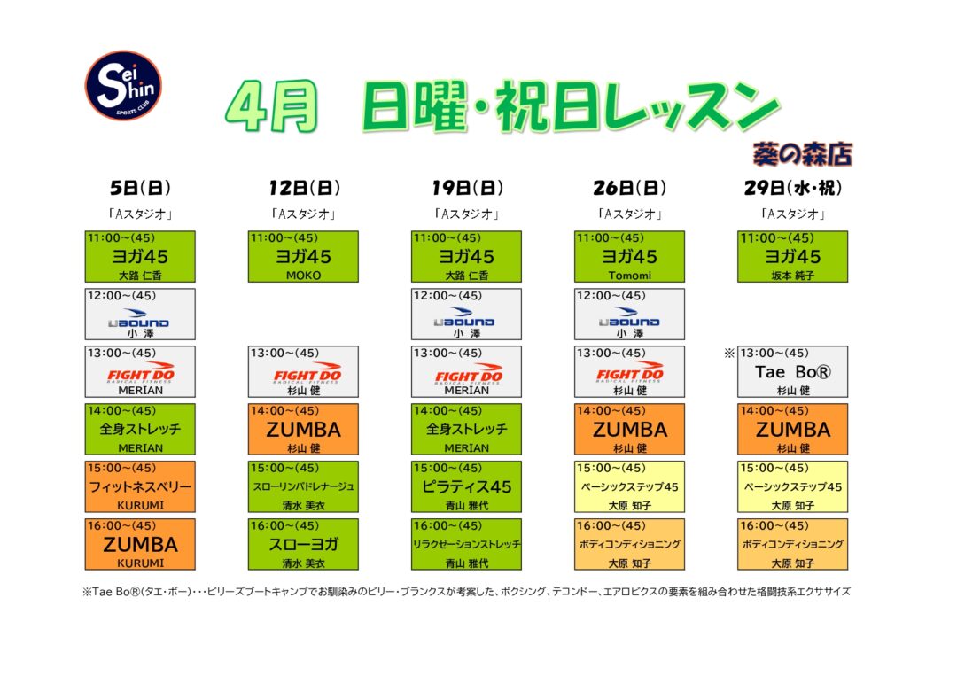 | 日程 | レッスン | インストラクター |