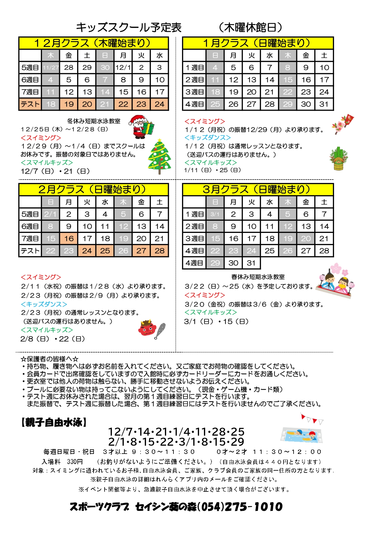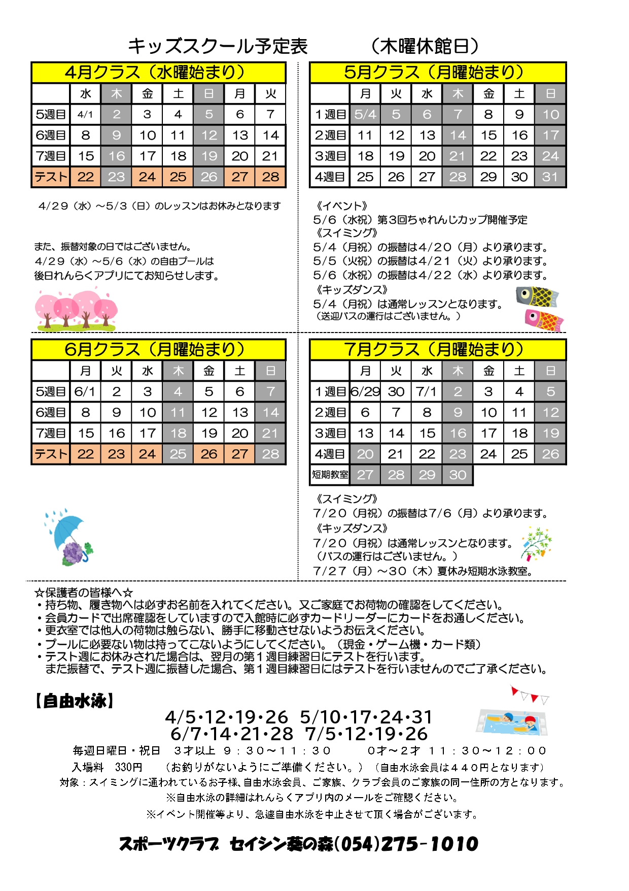 ※親子自由水泳の詳細はれんらくアプリ内のメールをご確認ください。